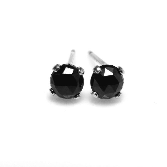 ブラックスピネル 天然石 ピアス ローズカット ラウンド 4mm シルバー SV925(1ペア)