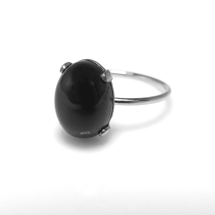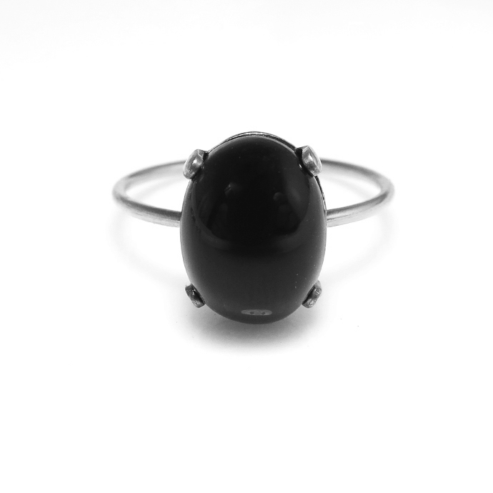 ブラックオニキス シルバー リング 指輪 天然石 10×8mm(4本爪カボションオーバル)SV925(1個)