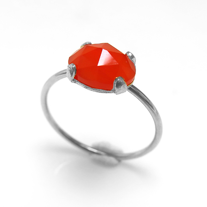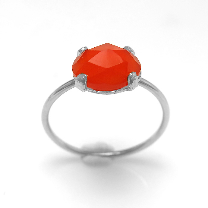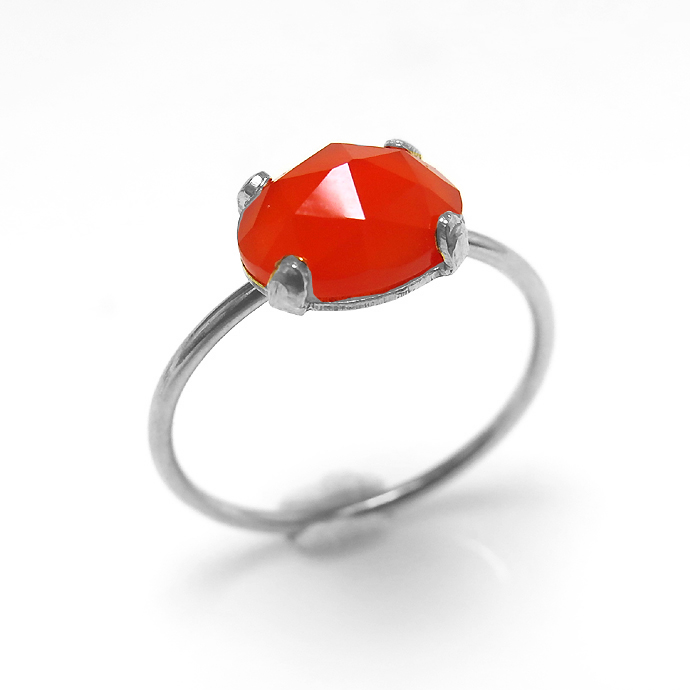 カーネリアン指輪 天然石リング<7月誕生石> 8×6mm(4本爪カボション/ローズカット・オーバル)シルバーSV925(1個)