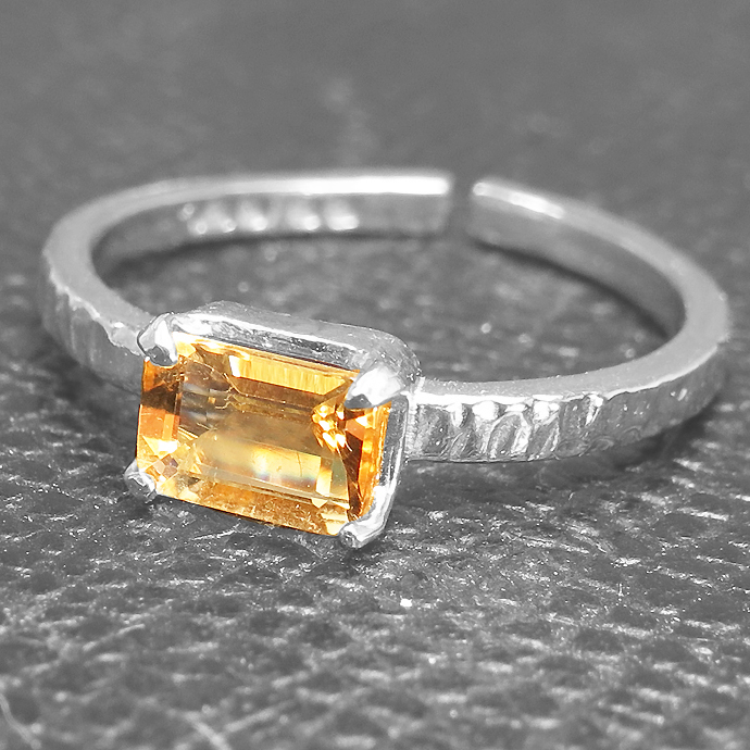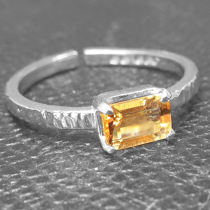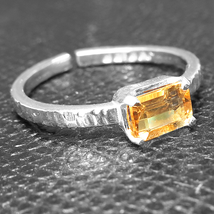 シトリンリング 指輪 天然石 オクタゴン レクタングル 6×4mm 真鍮ブラス シルバーカラー