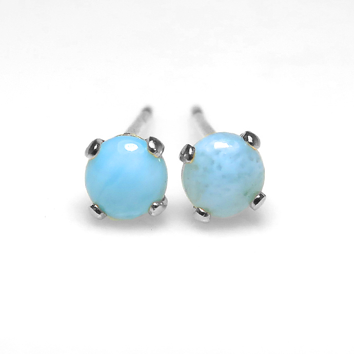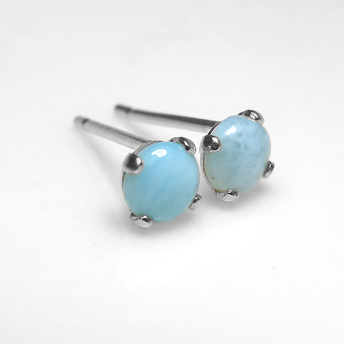 ラリマーピアス 天然石 カボション ラウンド 4mm「シルバー SV925」(1ペア)