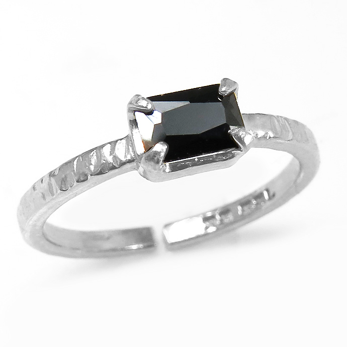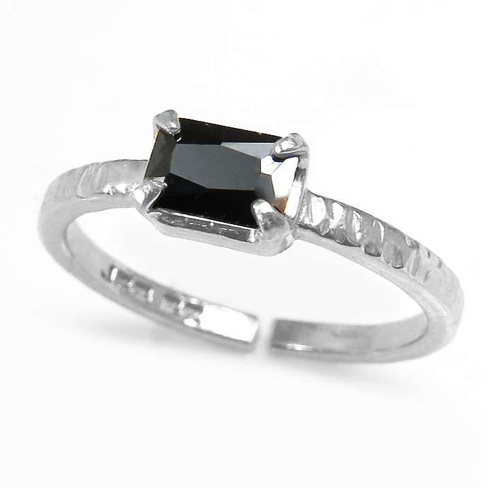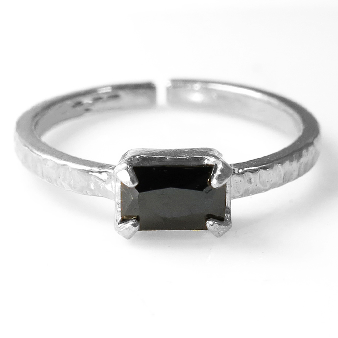 ブラックスピネル 指輪 リング 天然石 オクタゴン レクタングル 6×4mm 真鍮ブラス シルバーカラー