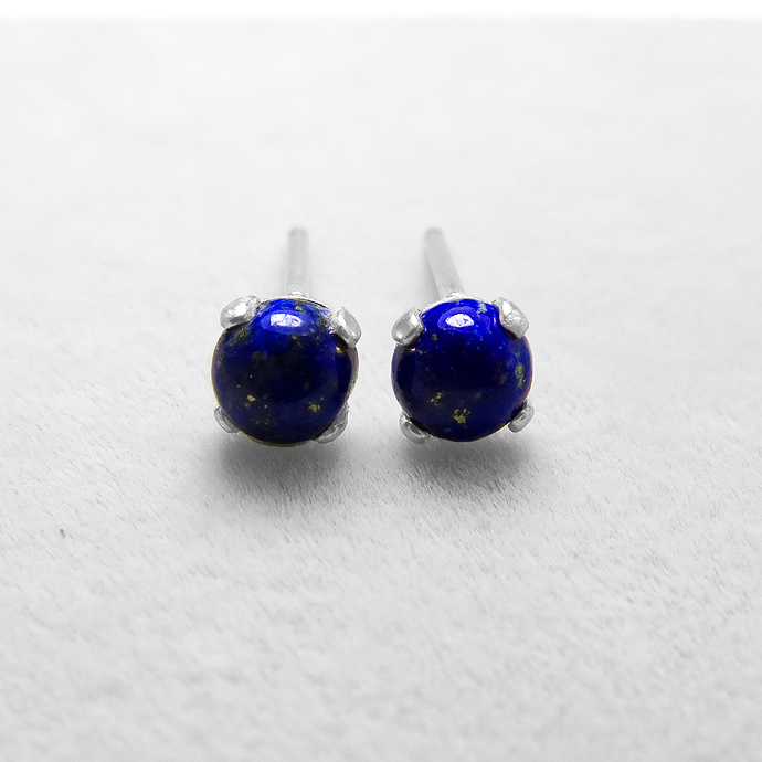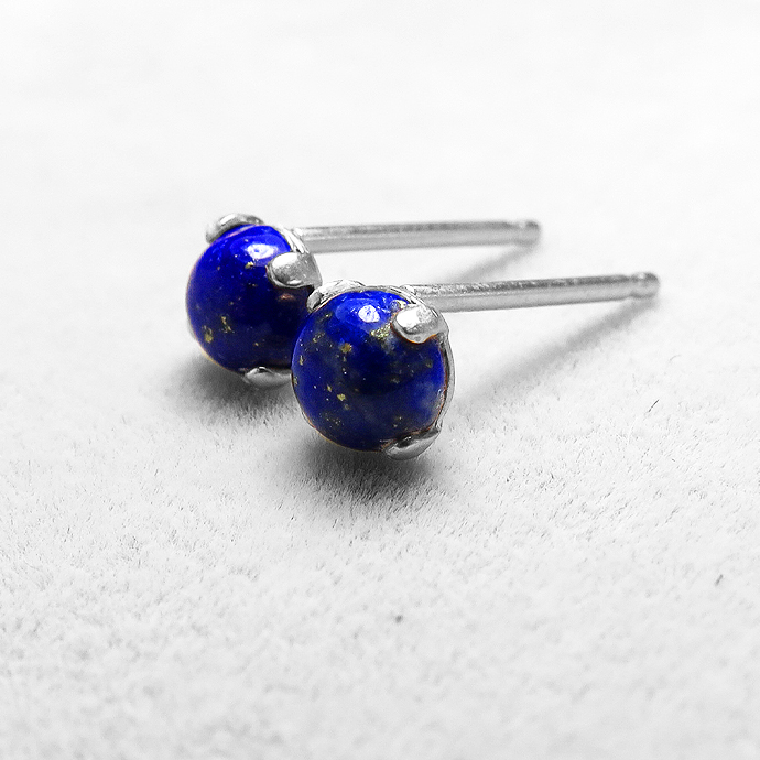 ラピスラズリ カボションピアス 天然石<12月誕生石> 4mm シルバーSV925(1ペア)