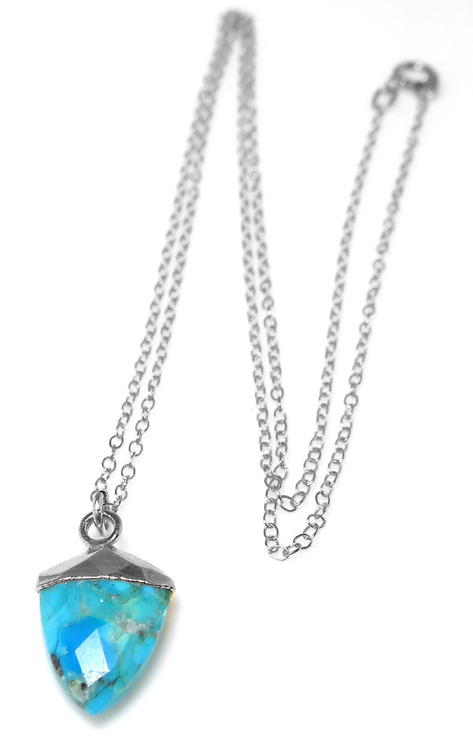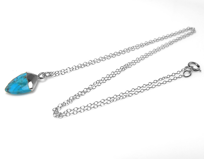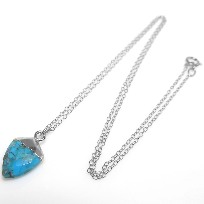 ターコイズネックレス トルコ石 天然石 シャークトゥース 17mm×10mm シルバーSV925