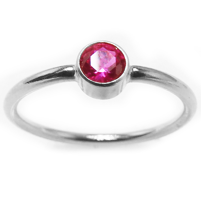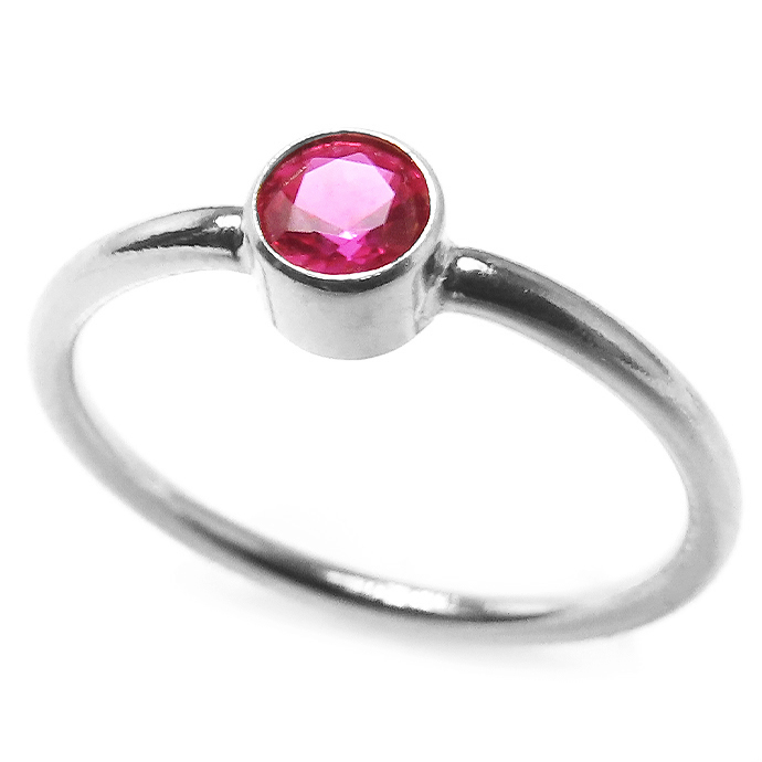 ルビー 合成石指輪 シルバー SV925 ファセットカット(ラウンド 4mm)ベゼル 1個
