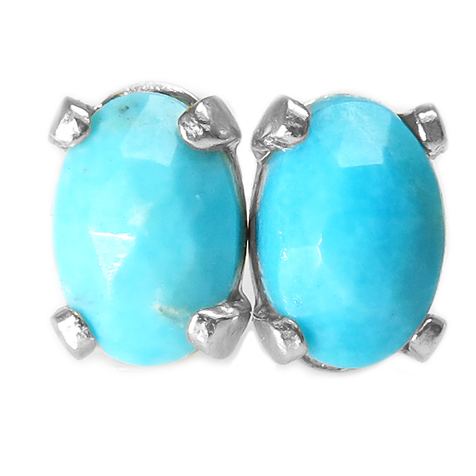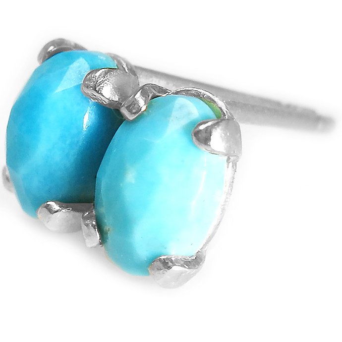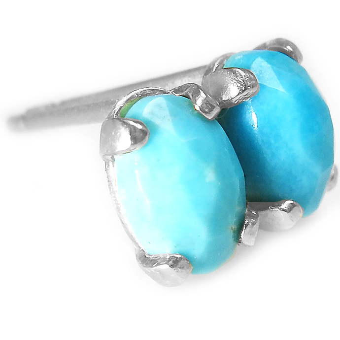 ターコイズピアス 天然石 ローズカット オーバル 6×4mm シルバー SV925 1ペア