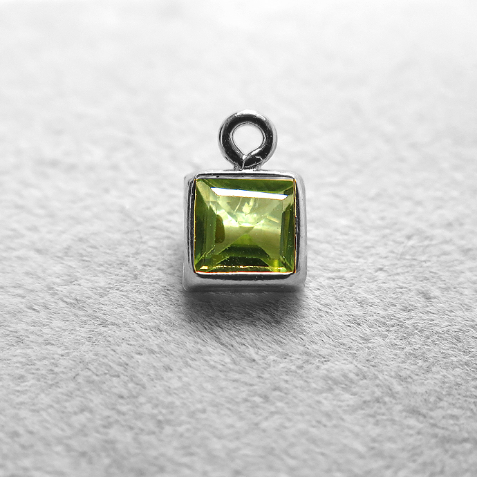 ペリドット チャーム 天然石ペンダント <8月誕生石>スクエア4mm シルバーSV925(1個)
