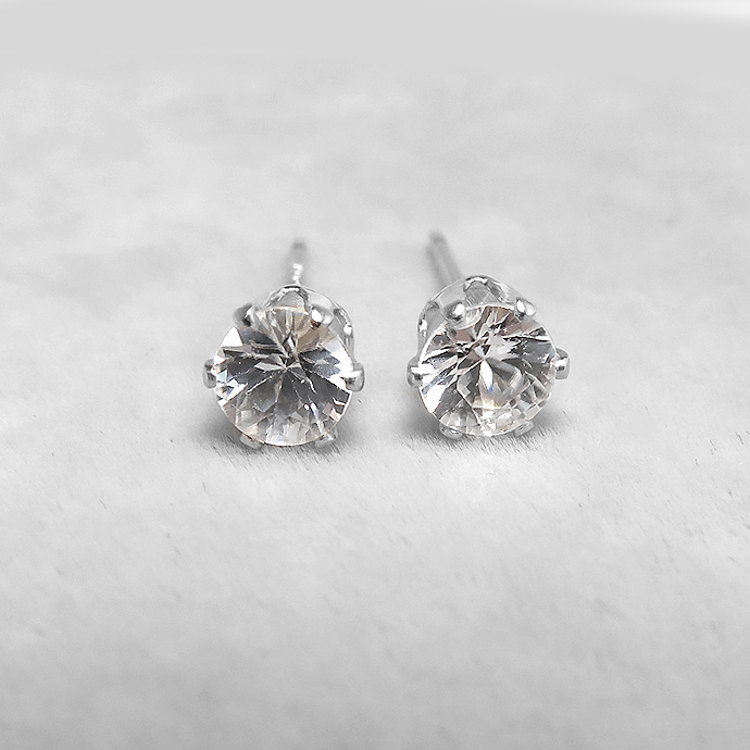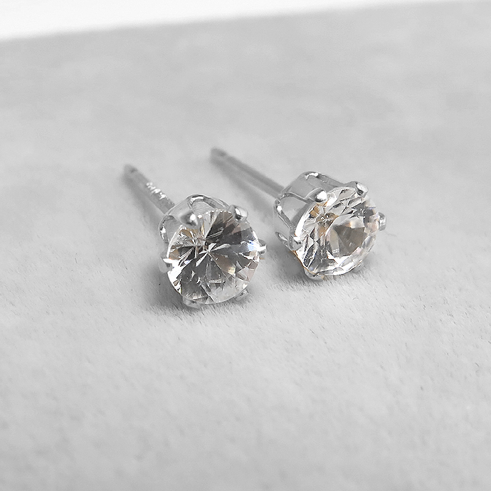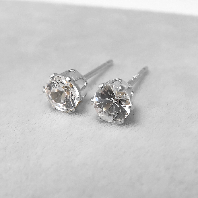 ホワイトジルコンピアス 天然石 4mmラウンド6本爪 シルバー SV925(1ペア)