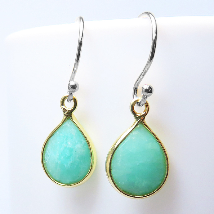 アマゾナイトピアス 天然石 13×8mmペアシェイプ ドロップ・フレンチフック コンビ ミックス シルバー ゴールド