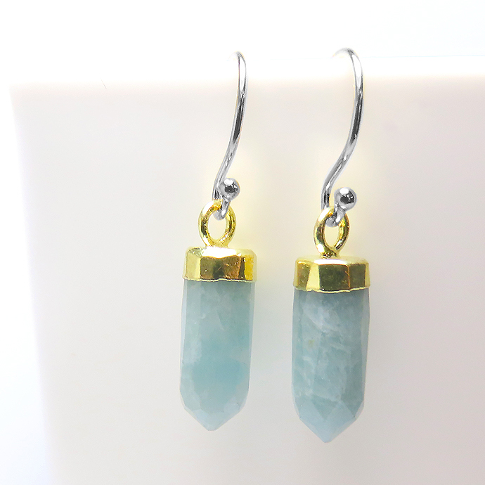 カルセドニーピアス 天然石16×5mm ポイント ドロップ・フレンチフック コンビ ミックス シルバー